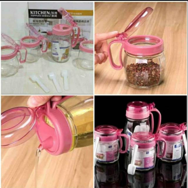 Tempat bumbu 3 pcs + sendok + tempat minyak bahan b