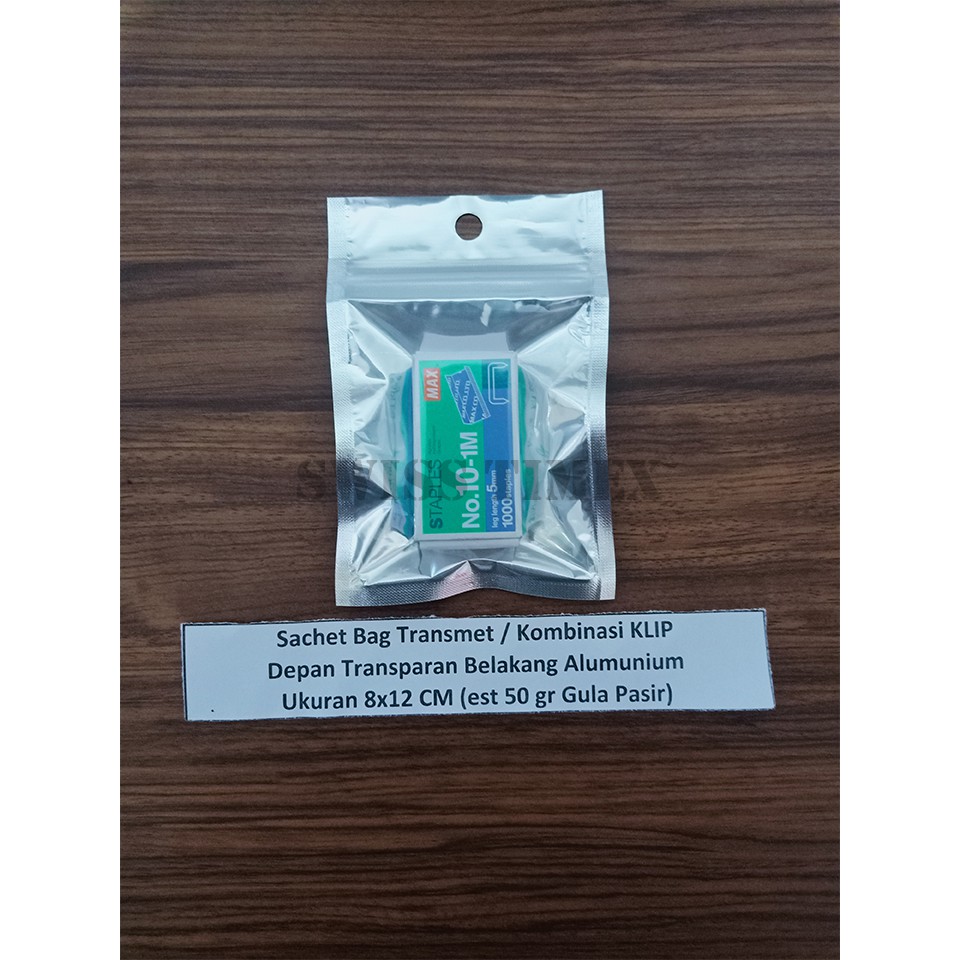 Name: 50 Pcs Sachet Bag Transmet Polos - Foil Silver Ziplock Klip Est 25 - 50 Gram 8x12
