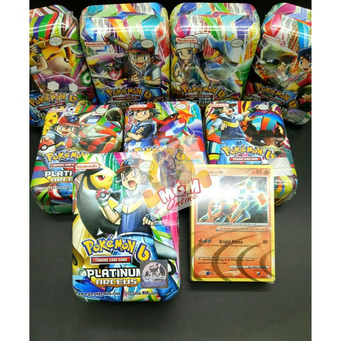 Kartu pokemon 6 KALENG PLATINUM ARCEUS Pokemon Trading Card PK48ENGLISH EDITIONPokemon adalah salah satu waralaba media yang dimiliki oleh perusahaan permainan video Nintendo dan diciptakan oleh Satoshi Tajiri pada 1995. Pada mulanya, Pokmon adalah seri permainan video yang identik dengan konsol Game Boy. Pokmon merupakan permainan video tersukses kedua di dunia setelah serial Mario yang juga diciptakan oleh Nintendo.[4] Sementara bila dibandingkan dengan yang lain, Pokmon merupakan serial waralaba terlaris ketiga di dunia setelah James Bond (karya Ian Fleming) dan Transformers (karya Hasbro), yang masih terus berjalan dan diperbaharui sesuai perjalanan zaman. Waralaba Pokmon sendiri muncul dalam beragam bentuk, yaitu permainan video, anime, manga, trading cards, buku, mainan, dan masih banyak lagi. Waralaba media ini merayakan ulang tahunnya yang ke sepuluh pada tanggal 27 Februari 2006. Dan pada 23 April 2008, omzet penjualan permainan video Pokmon telah mencapai 180 juta kopi[5], melebihi penjualan permainan video Transformers.Produk yg di dapat dalam membeli produk ini adalah:1pc Kaleng dengan ukuran 7.3x10.1x3.3CM1Set Card Deck isi sekitar @38 kartu (Seal)Segera koleksi kartunya dan mainkan kartunya dengan teman anda.SalamMGM Onl