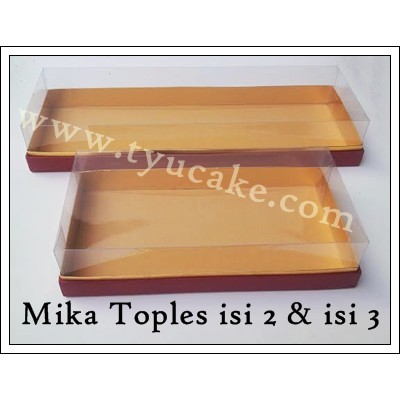 Ada 2 Ukuran :Untuk isi 2ToplesHarga : Rp. 25.000,-/Pak1Pak isi 2MikaUkuran Box : 29cm x 14,5cm Tinggi-6,8cmUntuk isi 3ToplesHarga : Rp. 30.000,-/Pak1Pak isi 2MikaUkuran Box : 42,4cm x 14,5cm Tinggi-6,8cmWAJIB DIBACA:========================- Setiap Hari Senin Toko LIBUR (Tidak ada Pengiriman) Hari Selasa buka kembali.- Pengiriman perhari nya..Via JNE :Hari Selasa-Jumat : transaksi DONE sebelum jam 4soreHari Sabtu : transaksi DONE sebelum jam 12 siangHari Minggu : Agen JNE dan Wahana TUTUP, transaksi DONE sebelum jam 13.00, di titip pengiriman di hari Senin)Via WAHANA :Agen Wahana beroperasional Hari Selasa-Sabtu, semua transaksi DONE sebelum jam 12 siang, ikut pengiriman hari itu juga.- Jam Operasional Toko (Store Operational Hour):Selasa - Jumat :Pk. 08.00wib - Pk. 19.00wib(khusus hari Jumat, jam 12.00 wib s/d jam 13.30 toko kami tutup dulu ya, untuk Sholat Jumat)Sabtu & Minggu :Pk. 08.00wib - Pk. 15.00wibHari Senin : TUTUPHari Libur(tanggalan merah) di luar hari minggu : TUTUPSemua akses pemesanan akan di non aktifkan di luar jam operasional kami.========================Untuk barang yang mudah pecah/rusak/peyot, sebelum kirim, kami pastikan sudah packing barang tersebut semaksimal mungkin(packing maksimal kami yaitu dengan plastik bubble dan koran/kertas di pinggiran) dan di paket di tempel dengan stiker "FRAGILE".Kami TIDAK AKAN MENGGANTI barang yang nantinya jadi pecah/rusak/peyot karena kesalahan dari ekspedisi/JNE/WAHANA ataupun kami TIDAK AKAN membantu untuk proses komplain ke ekspedisi/JNE/WAHANA nya ya karena aslinya ekspedisi/JNE/WAHANA tidak akan mau terima paket dengan barang pecahbelah/mudah rusak/mudah peyot tanpa asuransi dan packing kayu.========================Bila sudah klik beli bearti sudah mengerti aturan
