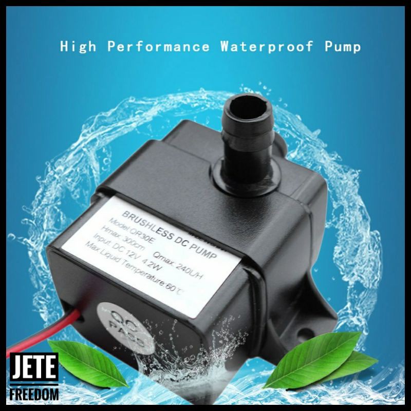 Pompa ini bersifat submersible atau tahan air, dapat disimpan di dalam air dan mengeluarkan flow air yang besar 240L/H. Biasa digunakan untuk pompa air di akuarium ikan. Selain untuk kebutuhan akuarium dapat juga digunakan untuk menyedot air dan keperluan-keperluan lainnya.High PressurePompa ini memiliki tekanan air yang kuat sehingga dapat menyaring air akuarium dengan cepat dan merata.Best O2 for Fishpompa ini juga dapat dijadikan sebagai gelembung udara ikan di kolam yang besar, flow air membuat ikan tidak cepat mati dan lebih sehat.High Quality MaterialSemprotan berbahan Plastic ABS yang kuat menahan tekanan air di dalamnya. Cara pemasangan yang mudah dan tahan air karena pompa air celup / summersible pump.PACKAGE CONTENTSBarang-barang yang anda dapat dalam kotak produk:- 1 x Pompa Air Ultra Quiet Submersible Aquarium Ikan Fish Tank- 1 x HolderMaterial:- plasticDimension:- 54(L)x37(W)x42(H)mm- Panjang Kabel: 45 cmOthers:- Rated Voltage: DC12V- Rated Current: 375MA- Power Consumption: 4.2W- Flow Rate: 240L/H- Inlet diameter: 8mm- Outlet diameter: 8mm- Working Life Span: 20000 hours- Noise: ?40DB- Water Proof: IP68- Heat Resistance: 0-100°- Cable Length:
