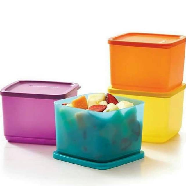Wadah penyimpan makanan dllWarna : ungu, biru, oren, kuningUkuran : 1 liter // 12.6 x 12.6 x 9.7 cmJumlah : 4