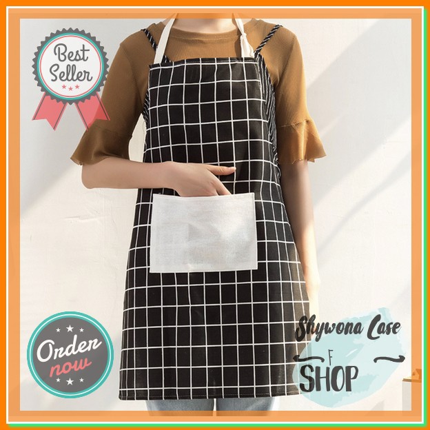 Produsen Perlengkapan di Kabupaten Wonogiri Celemek Masak Kain Katun Motif Kotak / Apron Masak Kain Katun Motif dari Shywona Case Shop Kota Jakarta Barat