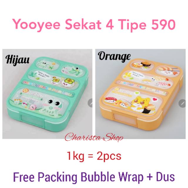 SILAHKAN PILIH SESUAI VARIASI YANG TERSEDIA AGAR STOCK TIDAK KACAU. TQ BARANG TELAH DICEK SEBELUM DIKIRIM (TIDAK RETAK) KERUSAKAN YANG DISEBABKAN EKSPEDISI DILUAR TANGGUNG JAWAB SELLER KARENA SUDAH DIPACKING DENGAN BUBBLE WRAP DAN DUS. TQTIDAK BERGARANSI JIKA ADA YG TIDAK LEAK PROOF (GAGAL PABRIK) KARENA DILUAR TANGGUNG JAWAB SELLER. ATC = SETUJUNO RETUR, NO COMPLAIN BARANG YANG SUDAH DIBELI TIDAK DAPAT DIKEMBALIKAN ATAU DITUKAR.Free Bubble Wrap + DUSHarap tanyakan stock terlebih dahulu. tq. Hanya jual ECERAN.. NO HARGA GROSIR. 1 kg = 2 pcsUkuran : 23cm x 17cm x 4,6cm - Aman untuk microwave - Dilengkapi dengan sendok dan sumpitKami juga menjual lunch bag karakter http://shopee.co.id/charistashop/389842722#lunchbox #yooyee #yooyeelunchbox #yooyee4sekat #yooyeesekat3 #lunchboxmurah #kotakmakan #kotakbekal #yooyeeantibocor #yooyeesekat #yooyeeantitumpah #leakproof #leakprooflunchbox #yooyeekarakter #kotakb