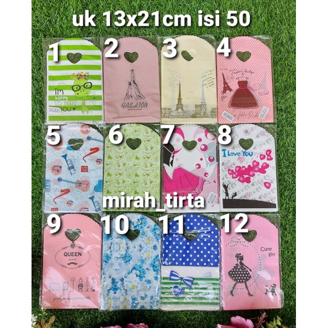 kantong plong motif ukuran 13x 21 cm dengan plong berbentuk loveisi kurang lebih 50 lembar (no komplain isi)membeli =setujuTIDAK BISA TUKAR UKURAN1KG MUAT 11 PAKPemesanan di atas jam 13.00 siang di kirim besok