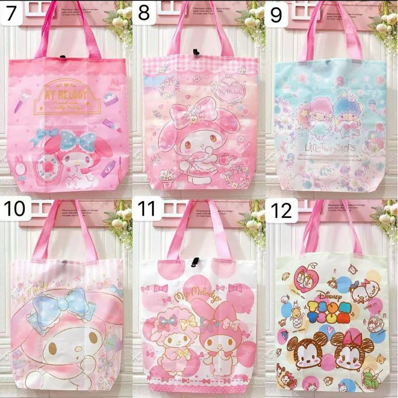 Name: Tas Belanja Shopping Bag Lipat Karakter My Melody Little Twin Stars Tsum Tsum Sanrio Disney