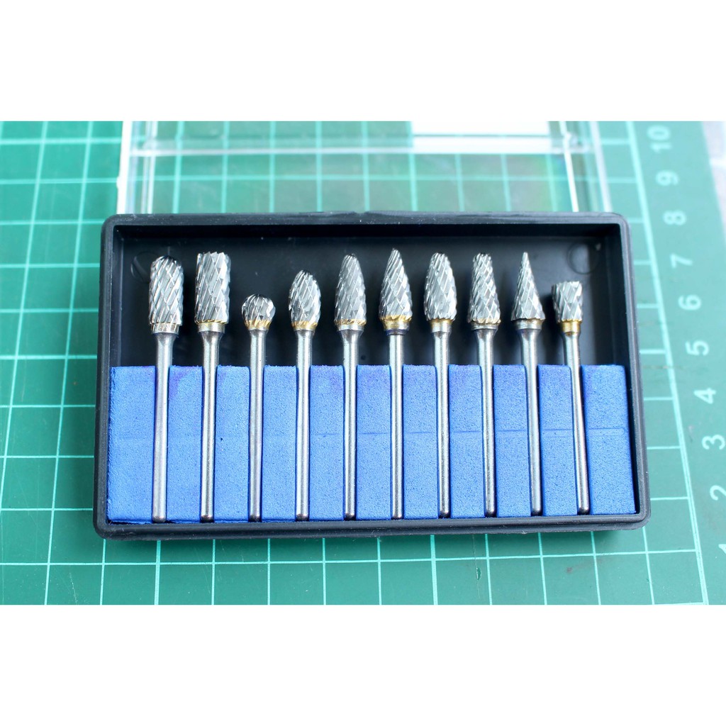 Material: Tungsten steel solid carbideShank diameter: 1/8 Inch / 3mmCompatibility: Smaller rotary toolsjika box hitam habis, akan dikirim randombahan Tungsten steel solid carbide adalah material yang lebih kuat dan tajam dari Hss ataupun titanium. tahan panas, bisa digunakan untuk bahan material keras, baik kayu, plastik, besi, baja dan lainyabox hitamFeatures:1. Hardmetal burrs used in pneumatic or electric tools, speed is 6000-40000 rpm, must clamp tool.2. From right to left direction of cutting uniform movement, not like the use of wheel for reciprocating cutting3. Be careful not to overexert (pressure is generally not more than 4 kg)4. Tungsten steel solid carbide burrs for DIY enthusiast or hobby and craft fan, and give your rotary tool even more functionality with this set of