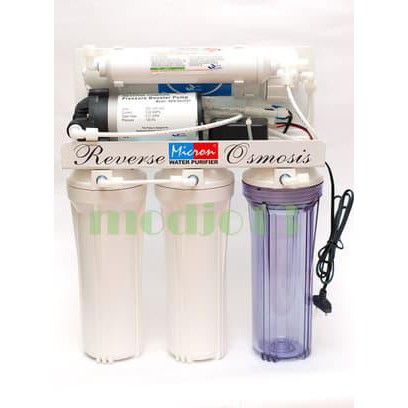 NOTE : Untuk keamanan lebih atas barang kiriman anda, silahkan ditambahkan peti kayu (mohon dibaca deskripsi produk terlebih dahulu) : 5 Step Reverse Osmosis System "MICRON" 50GPDReverse Osmosis Merupakan teknologi permunian Air yang sudah diakui diseluruh dunia, dengan kerapatan penyaringan sebesar 0,001 micron, sehingga dapat menyaring mineral terlarut seperti garam, dan kontaminan lainnya sehingga menghasilkan air yang lebih murni & siap untuk langsung di konsumsi.Mesin Reverse Osmosis (RO) Micron ini sudah komplit 1 set dan sudah siap untuk langsung dipasang dengan mengambil jalur inlet dari keran air yang ada di rumah.Untuk mesin RO disarankan hanya digunakan untuk air baku dengan TDS 200 Ppm. karena jika TDS lebih tinggi maka membran akan cepat mampet.Tersedia juga softcopy panduan instalasi yang dapat dikirimkan via email setelah melakukan pembelian.- 5 Step Reverse Osmosis : Sedimen, GAC, CTO, RO & Post Carbon (Merk / Ukuran filter tergantung stok manufacturer, mungkin berbeda dengan di foto)- Membran LG 50Gpd- Selang tambahan- Pressure tank plastik (anti karat)- Keran AngsaNote: Barang akan di tes menyala dan cek fisik sebelum dikirimkan. Segala KERUSAKAN akibat ekspedisi, antara lain : housing pecah /retak, fitting patah, clamp patah, dan lain sebagainya yang disebabkan handling ekspedisi tidak ditanggung penjual. Dengan membeli produk ini maka pembeli setuju dengan syarat di