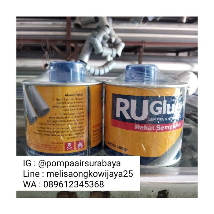 DIJAMIN ASLI DAN REKAT,MANAJEMEN STOK KAMI SANGAT BAGUS. SEHINGGA TIDAK MUNGKIN LEM KERING.Dulunya lem ini terkenal dengan sebutan lem wavin, namun sekarang berubah nama menjadi ru